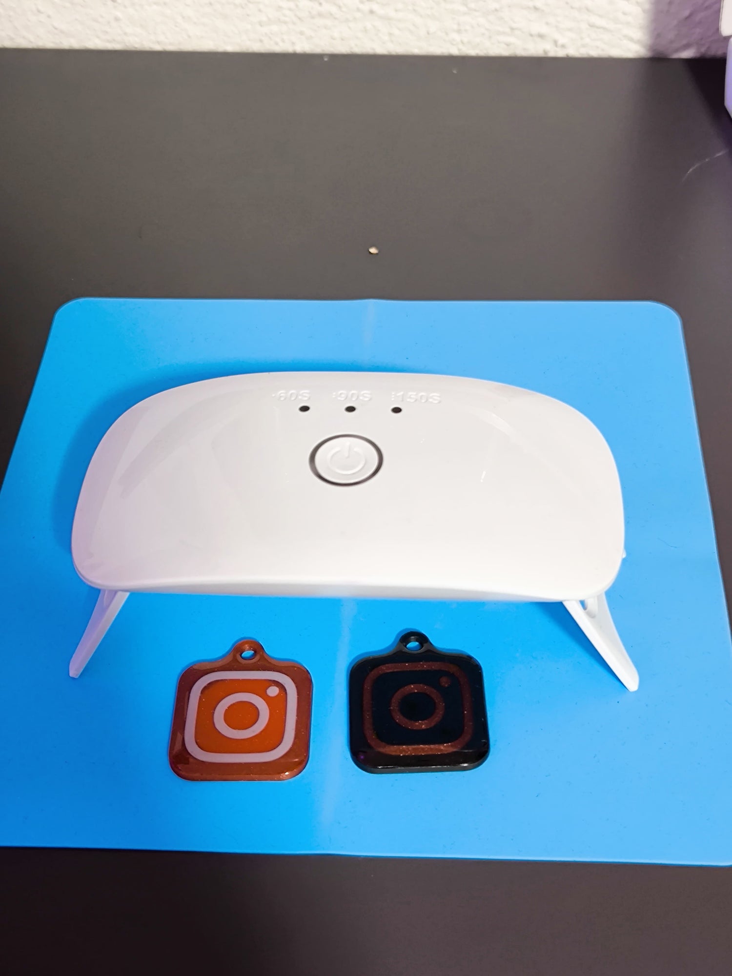 Im nächsten Schritt wird jeder Anhänger mit einer transparenten Harzschicht versehen und unter UV-Licht gehärtet. Das Ergebnis ist ein stabiles, langlebiges Produkt mit hochwertiger Oberfläche.